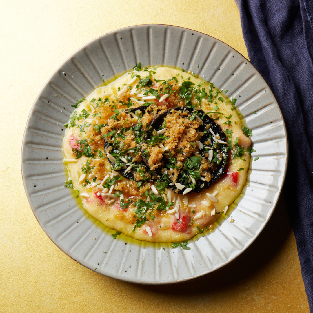 Dish 3 - Garlic & Parsley Mushrooms with Cheesy Polenta & Toasted Almonds