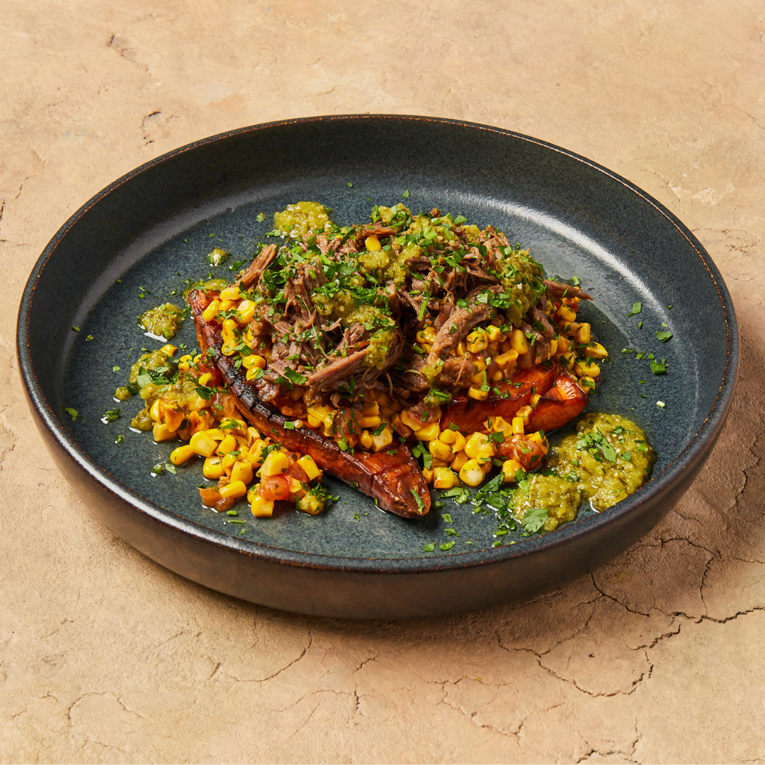 Dish 2 - Slow Cooked Beef Brisket "Loaded Sweet Potatoes" with ATLAS Corn Salsa